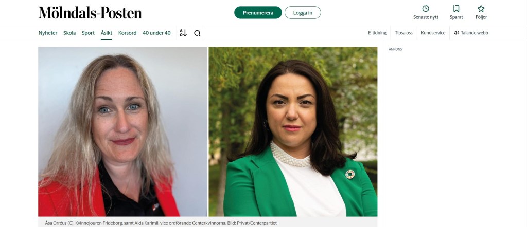 Debattartikel publicerad i Mölndals-Posten 2025-05-13